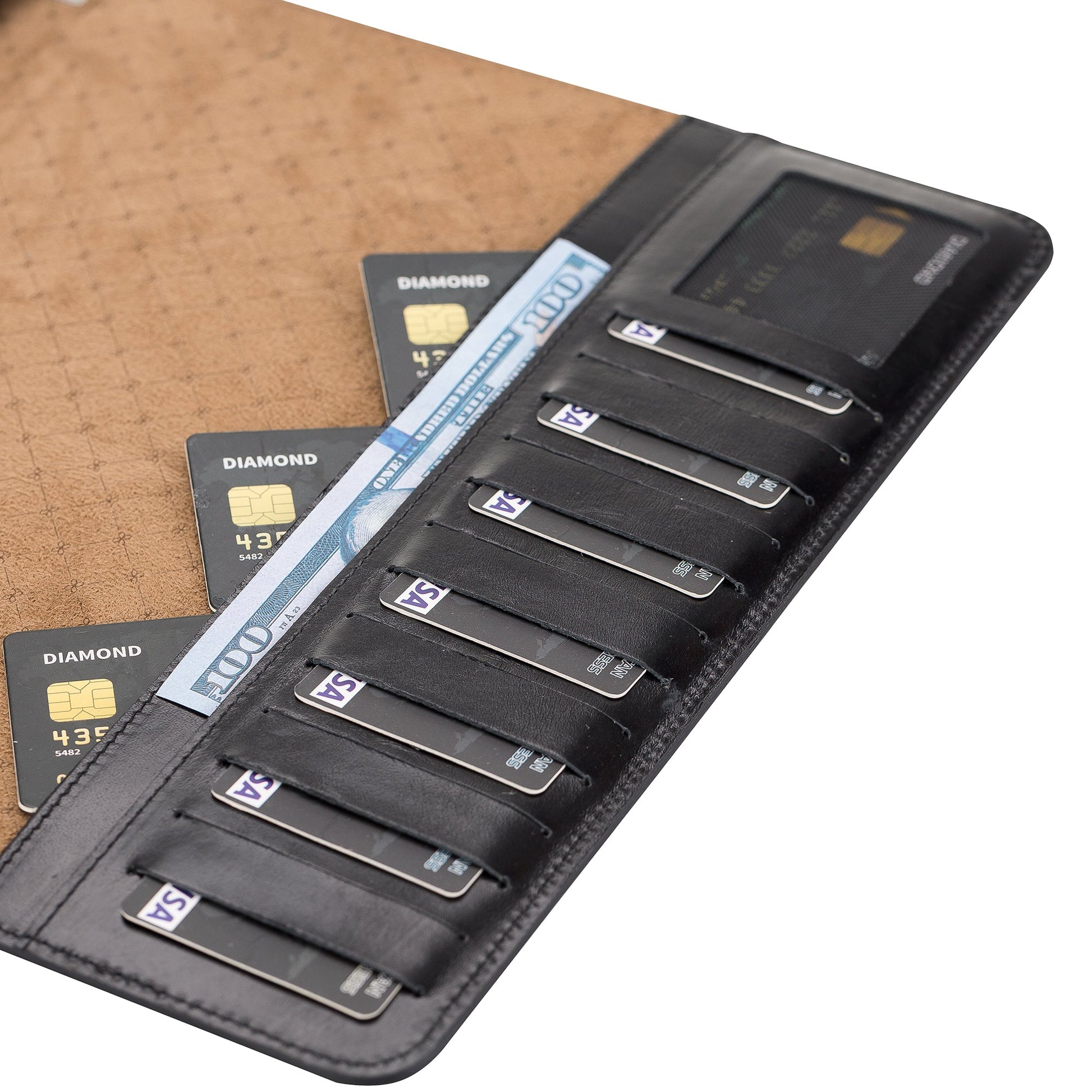 - 10 card slots, 1 ID window, and 2 large interior slots